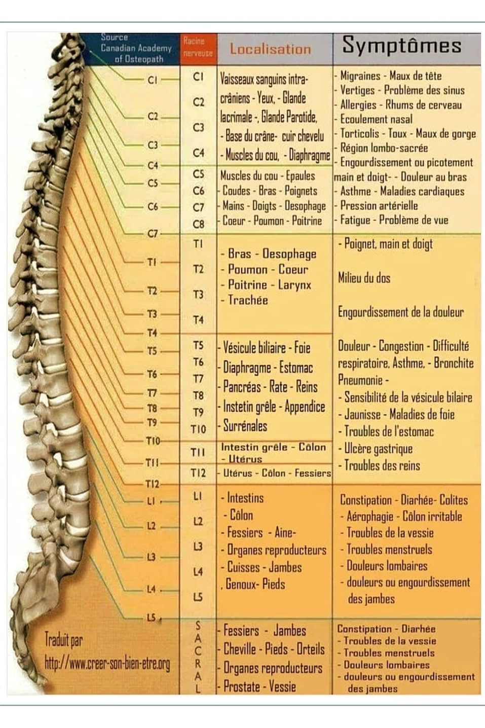 Lorsque je travaille avec le patient allongé sur le ventre, je procède à une vérification de chaque vertèbre. Si une ou plusieurs vertèbres s’avèrent sensibles ou douloureuses, je commence par libérer la vertèbre située au-dessus et celle située en dessous, avant de traiter la vertèbre la plus sensible. Si cette dernière reste douloureuse, je cherche à identifier l’organe auquel elle est reliée. Cela permet de travailler sur cet organe (foie, rate, etc.) afin de le libérer de ses mémoires nocives.